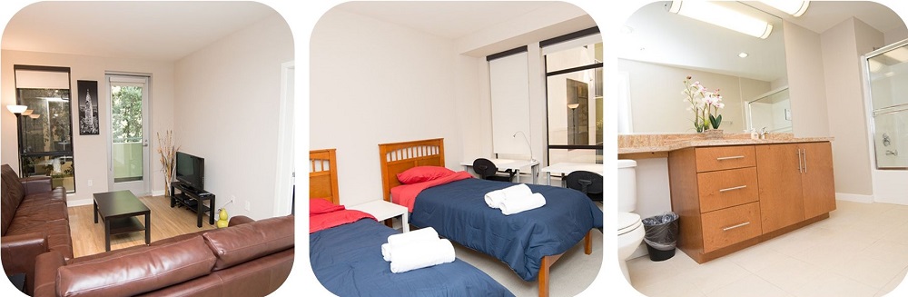Apartmány se nachází uprostřed Santa Monicy. Každý apartmán má jedinečný styl, vybavené jsou moderními spotřebiči a jen pár kroků od restaurací, obchodů, umění, kultury a pláže. Zároveň jsou pouze 10 minut chůze od školy. Poloha zde.