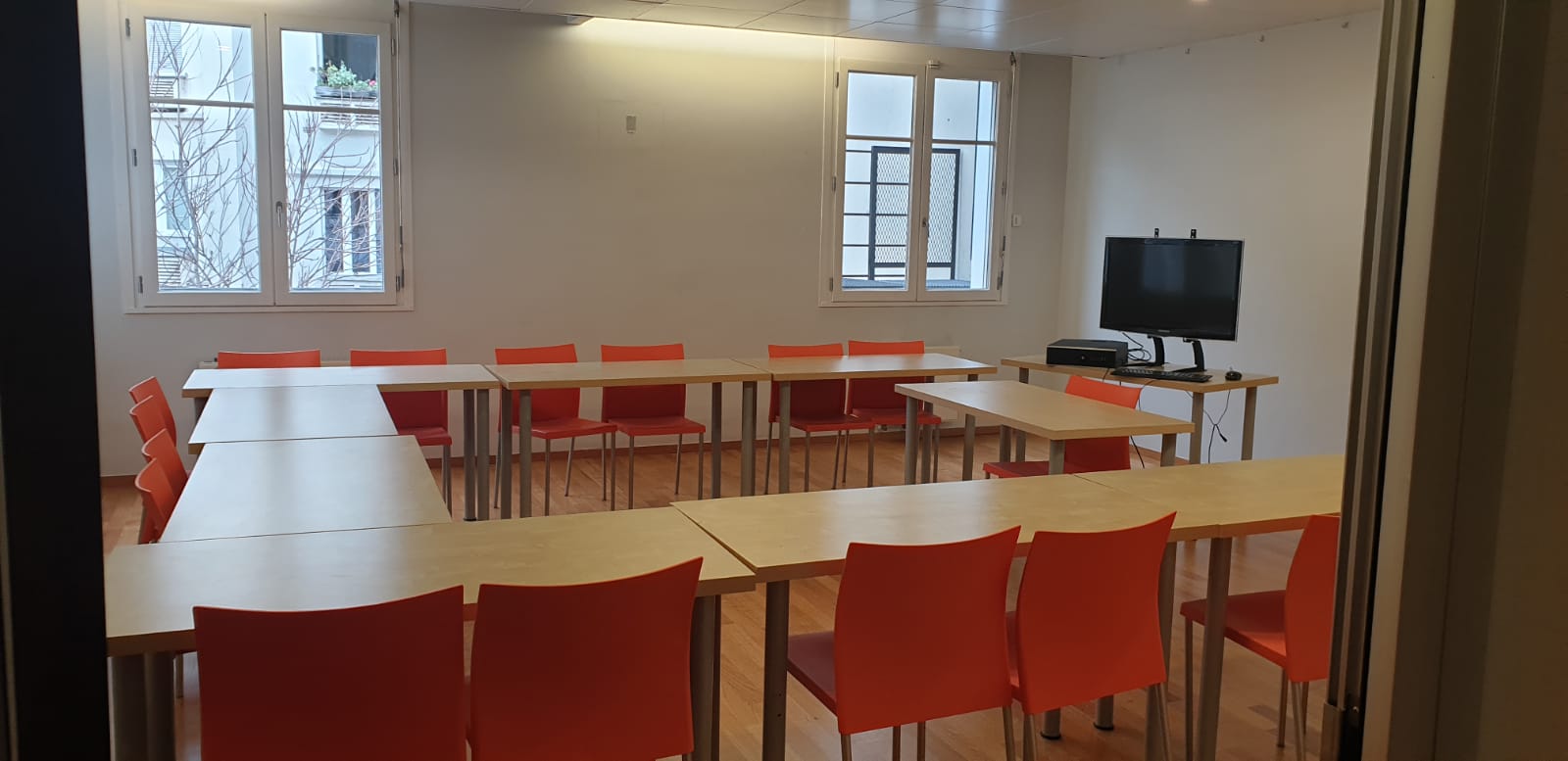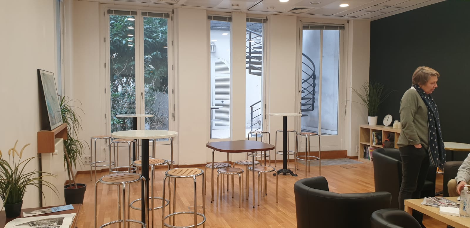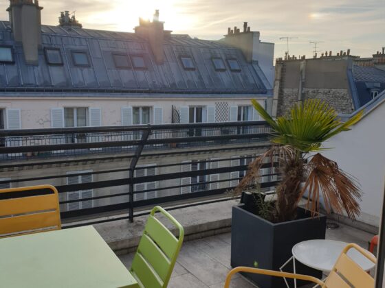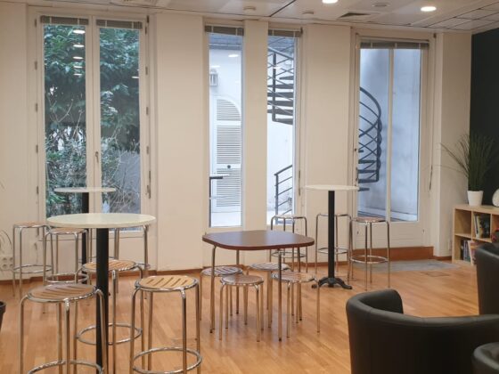Kromě moderně vybavených učeben s nejnovějšími technologiemi nabízí škola také tři příjemné společné prostory, kde se studenti mohou potkávat a trávit volný čas. Patří mezi ně recepce s výhledem do klidného vnitřního dvora, knihovna a dvouúrovňová střešní terasa, ze které se otevírá krásný pohled na pařížské střechy i typickou hausmannovskou architekturu celé čtvrti.